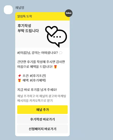 D-day | 알림톡-6 | 강의 후기작성 조건과 혜택 |