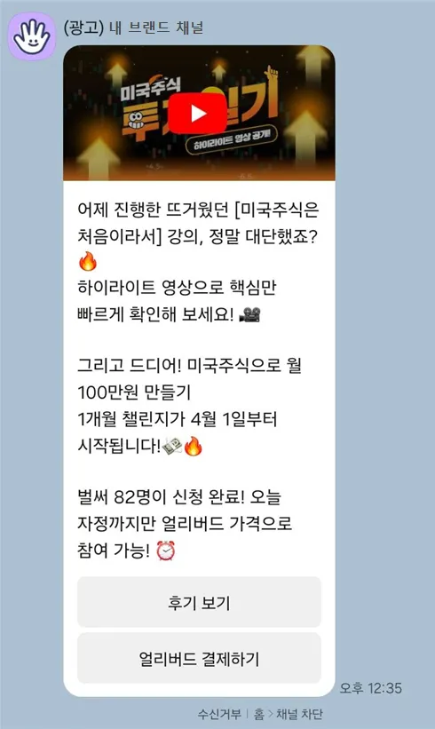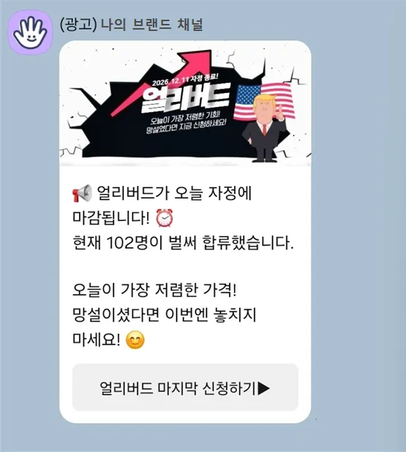 친구톡 2 : (광고) 얼리버드 특가 마지막 신청 안내