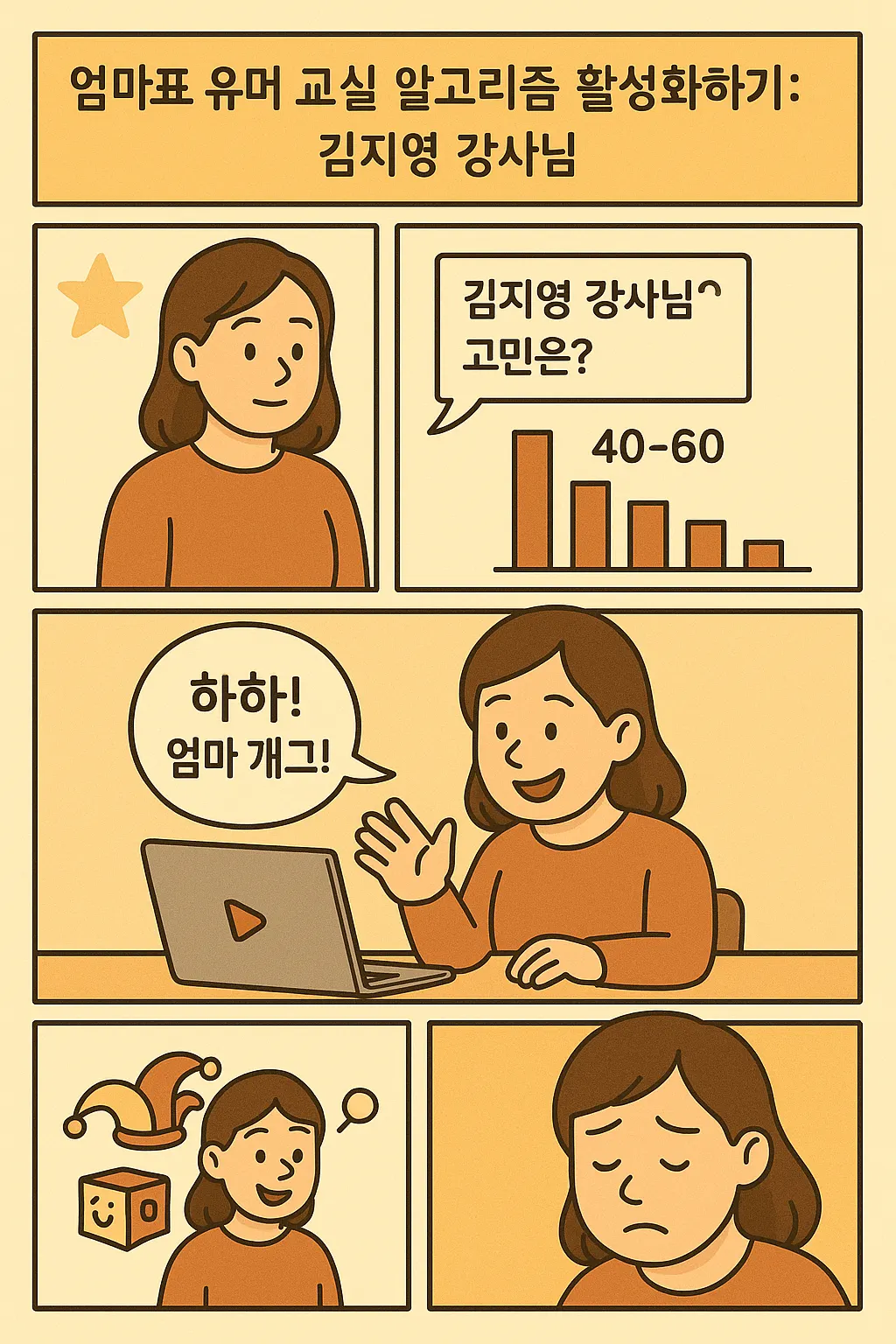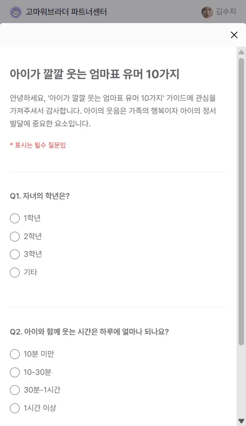 신청 직후: "환영합니다! 첫 번째 엄마표 유머 비법 영상입니다. 이 영상의 '놀이터 동물 흉내내기' 기법을 저녁 귀가 시간에 시도해보세요. 아이들의 폭소를 책임집니다!"