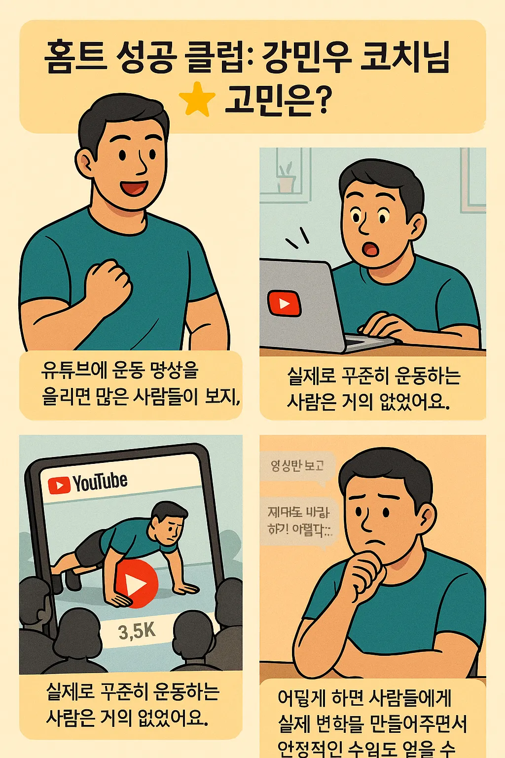 "유튜브에 운동 영상을 올리면 많은 사람들이 보지만, 실제로 꾸준히 운동하는 사람은 거의 없었어요. 영상만 보고 제대로 따라 하기 어렵다는 피드백도 많았죠. 어떻게 하면 사람들에게 실제 변화를 만들어주면서 안정적인 수입도 얻을 수 있을까 고민했어요."