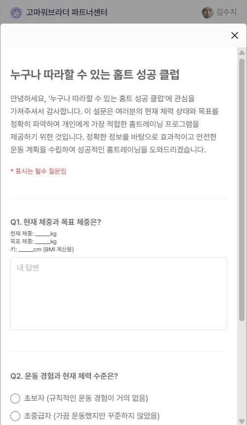"운동 경험과 현재 체력 수준은?" 질문으로 시작점 이해