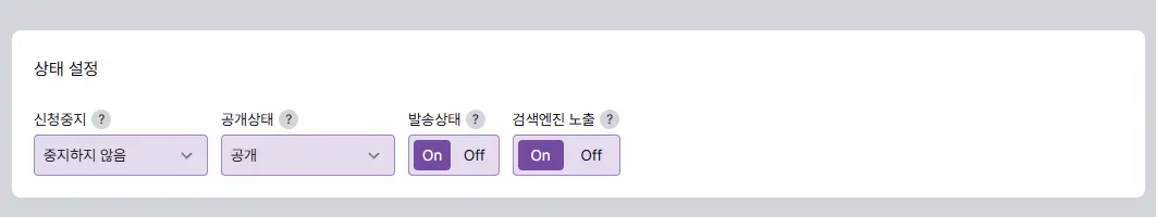 ‘ON’으로 설정하면 구글, 네이버 등 검색엔진에 신청페이지가 노출됩니다.