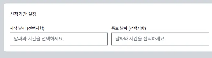 신청을 받을 시작 날짜와 종료 날짜를 선택할 수 있습니다.