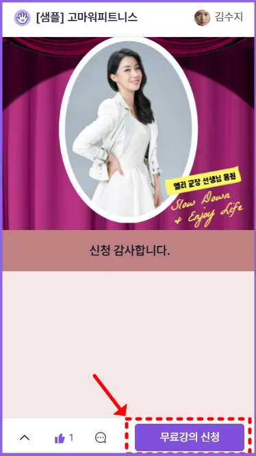 ‘신청하기’ 버튼은 고객이 콘텐츠를 신청할 때 클릭하는 버튼입니다.