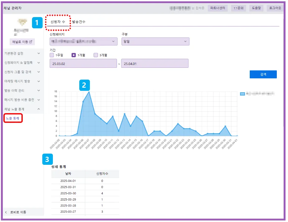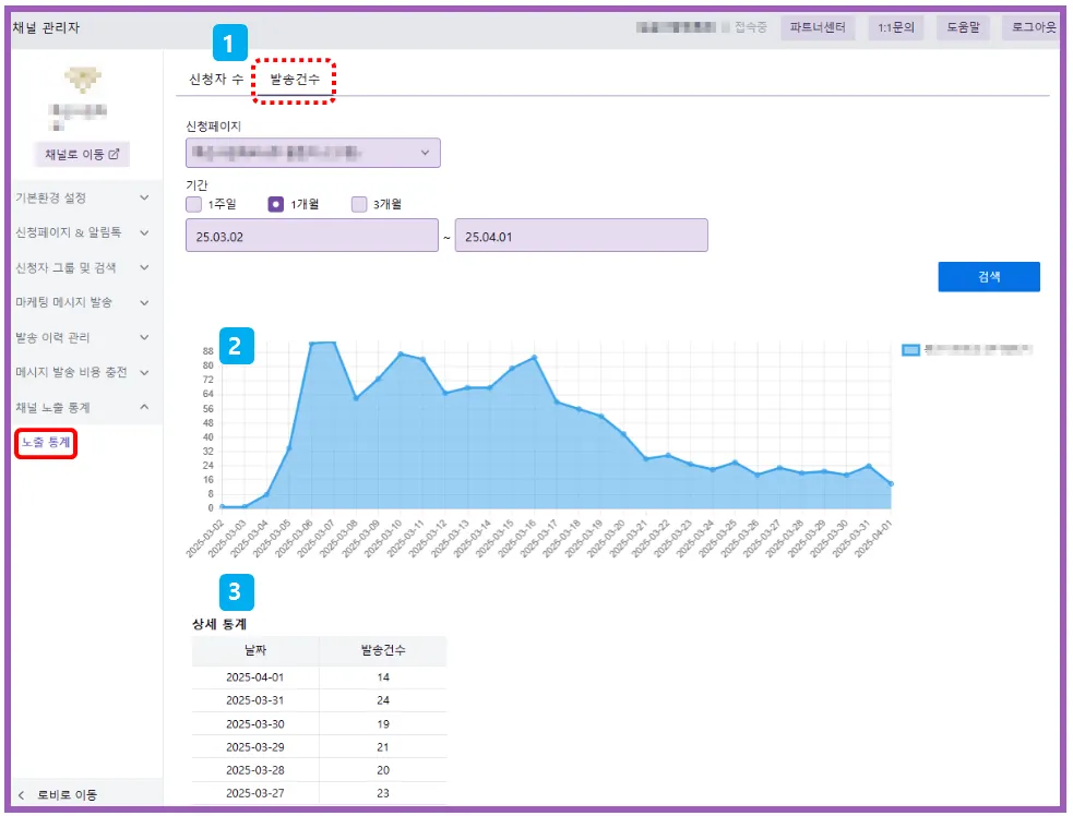 μ μ²νμ΄μ§μ κΈ°κ°λ³ λͺ건μ λ©μμ§κ° λ°μ‘λμλμ§ μΆμΈλ₯Ό νμ