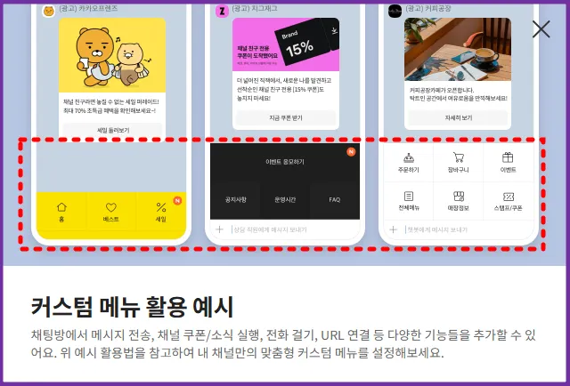 채팅방 메뉴는 숨겨진 매출 포인트입니다. 꼭 적극적으로 활용하세요!
