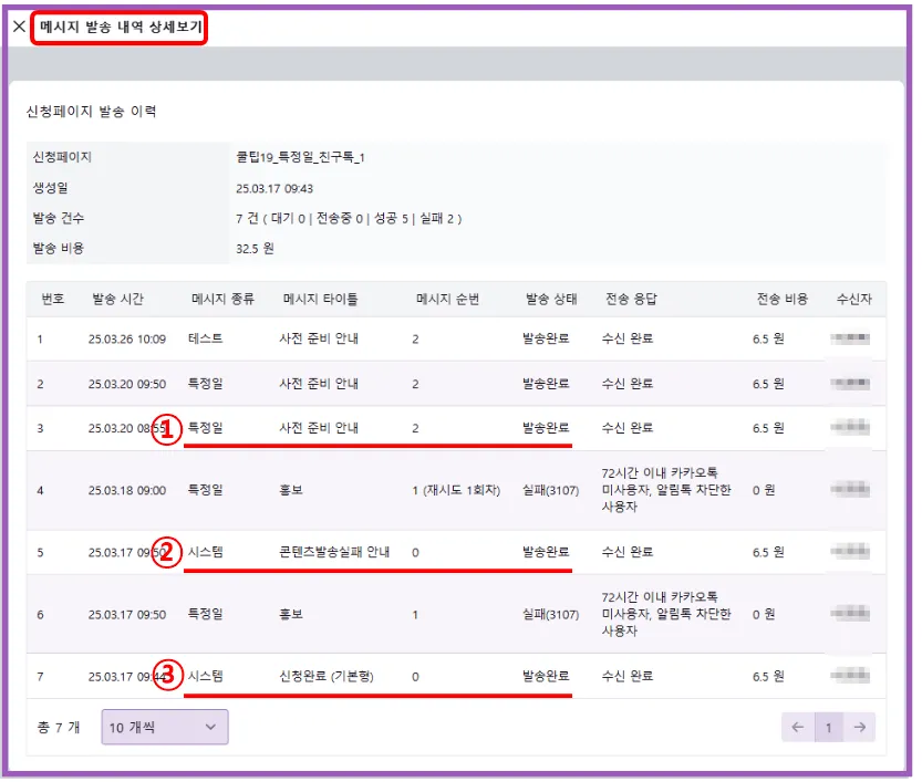 발송건별 세부 내역이 아래와 같이 조회됩니다
