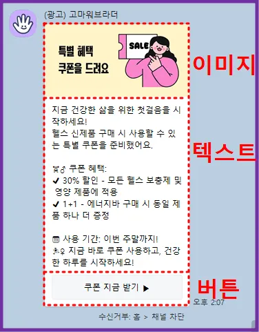 목적: 광고/홍보성 메시지(혜택 제공) 로 고객을 설득합니다.