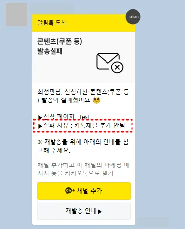 발송 실패 시 처리 | 고객이 알림톡 차단한 경우 실패