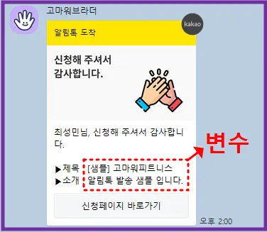 (카톡채널 친구 여부 상관없음) | 신청페이지를 통해 신청한 고객