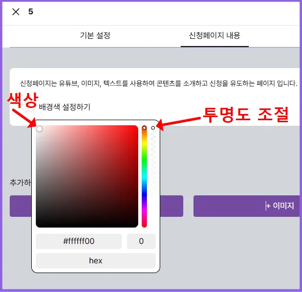 신청페이지 본문의 배경색과 투명도를 조정할 수 있습니다.
