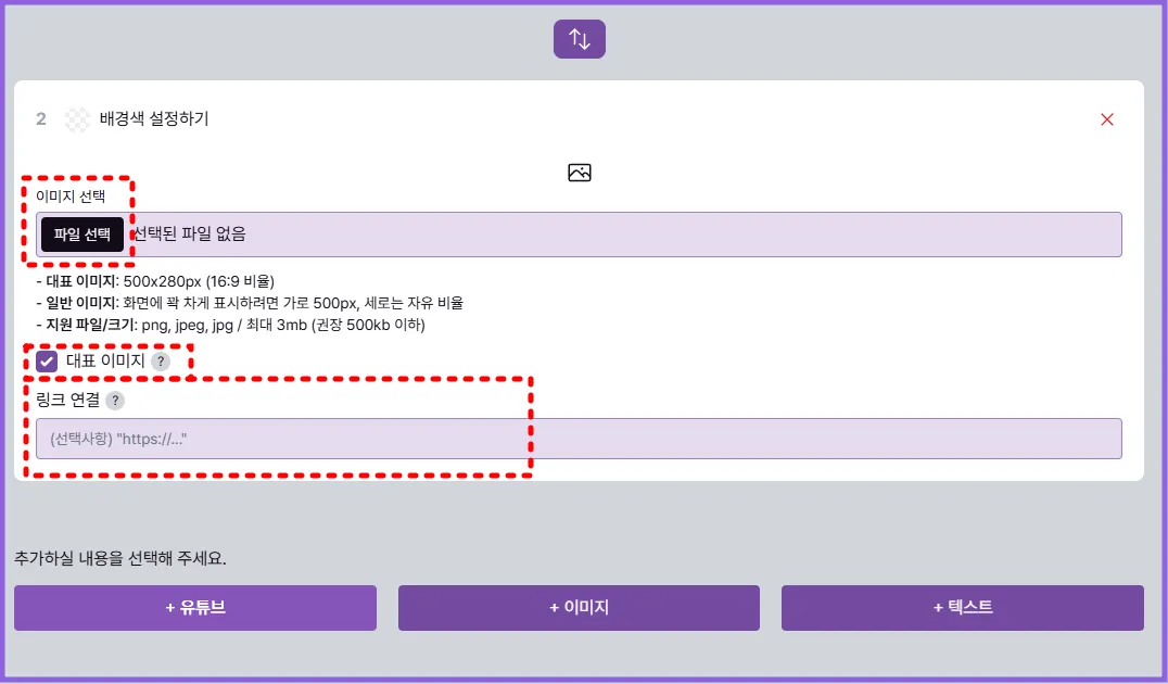 고객이 보게 될 흐름을 고려해, 영상 → 이미지 → 텍스트 순 등으로 구성해 보세요.