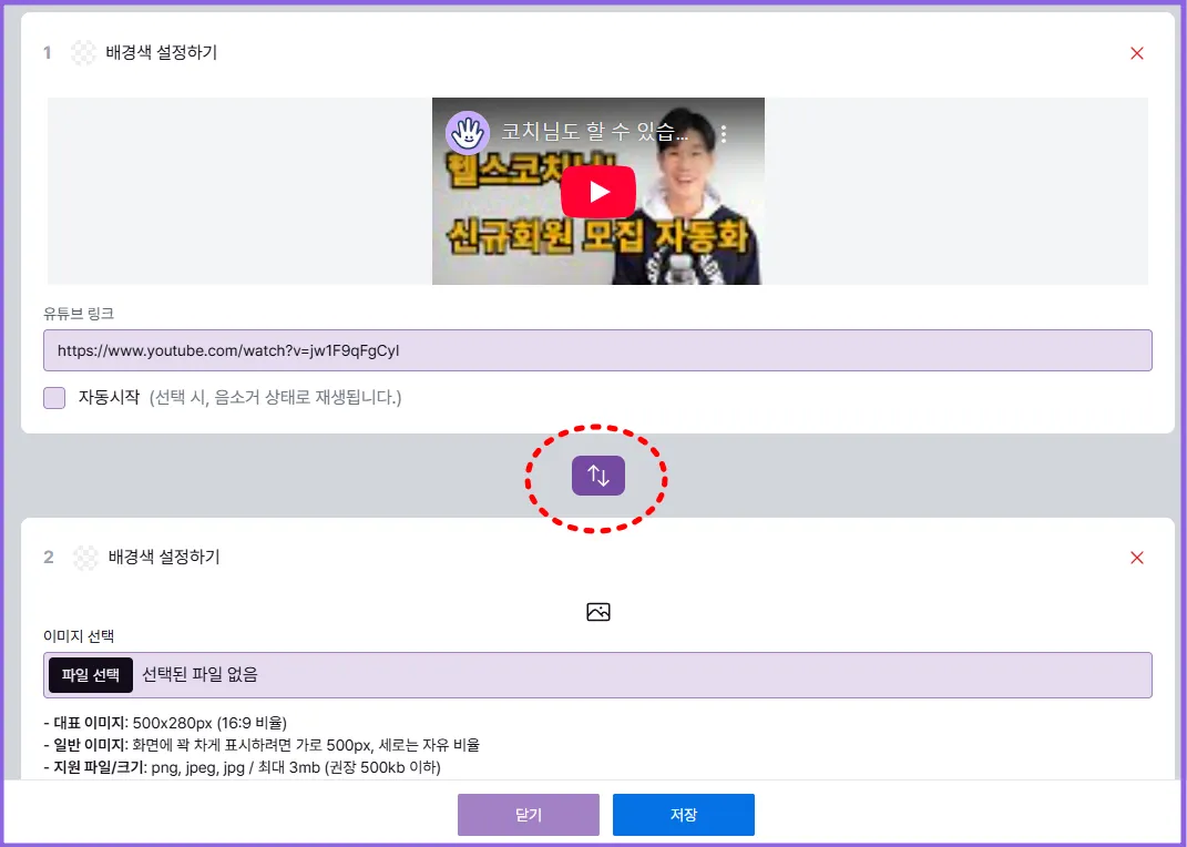 순서바꿈 아이콘을 클릭해 콘텐츠 순서를 조정하세요.