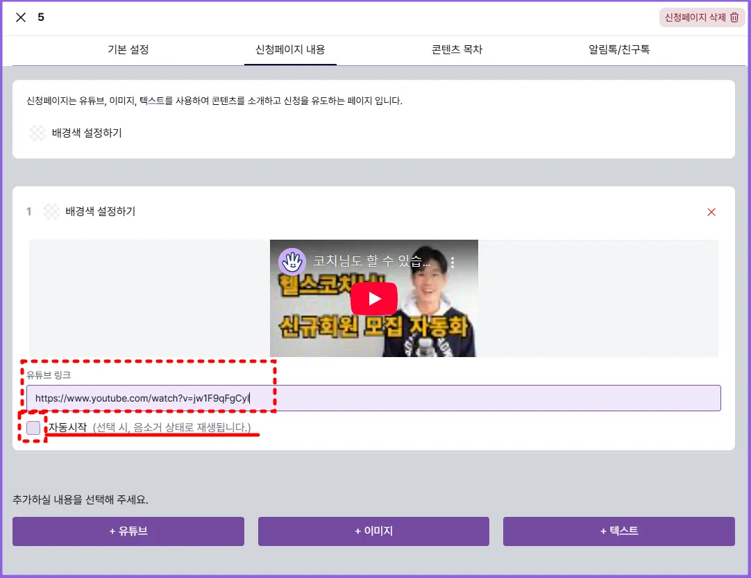 유튜브 링크를 입력하면, 신청페이지 내에 영상이 삽입됩니다.