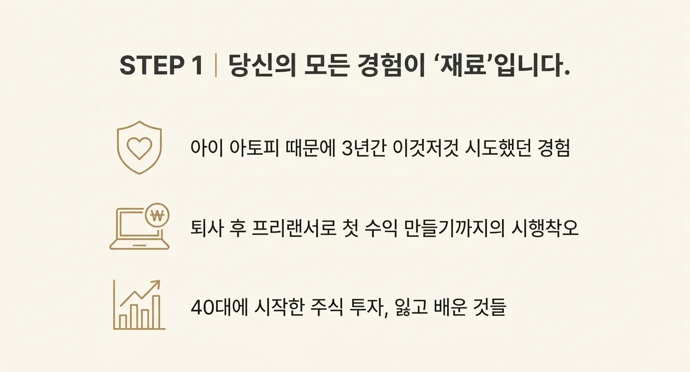 ❌ 양으로 압도하기 (5권의 책) ↓ ✅ 질로 설득하기 (1개의 강력한 무기)